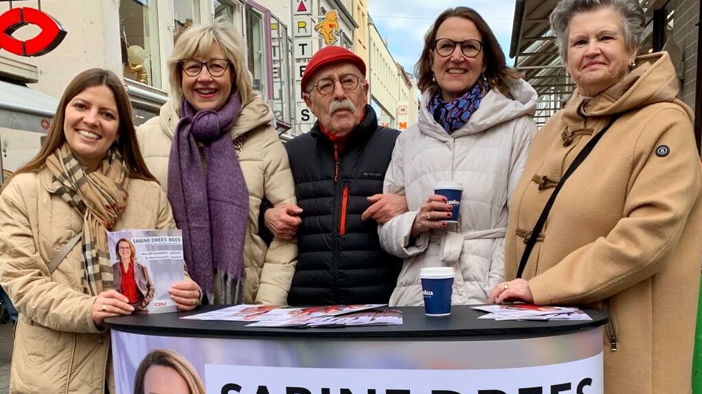 Erster Wahlstand der CDU mit großer Besetzung und toller Stimmung